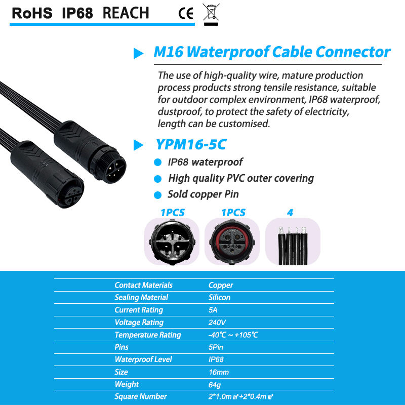 The YXY M16 Waterproof Connector is designed to provide a reliable and watertight connection in the most demanding environments. Whether you are working with LED lighting, industrial equipment, or telecommunications, this connector ensures that your electrical cables remain protected and functional. Small, robust, and easy to install, it's the professional choice for outdoor and marine applications.